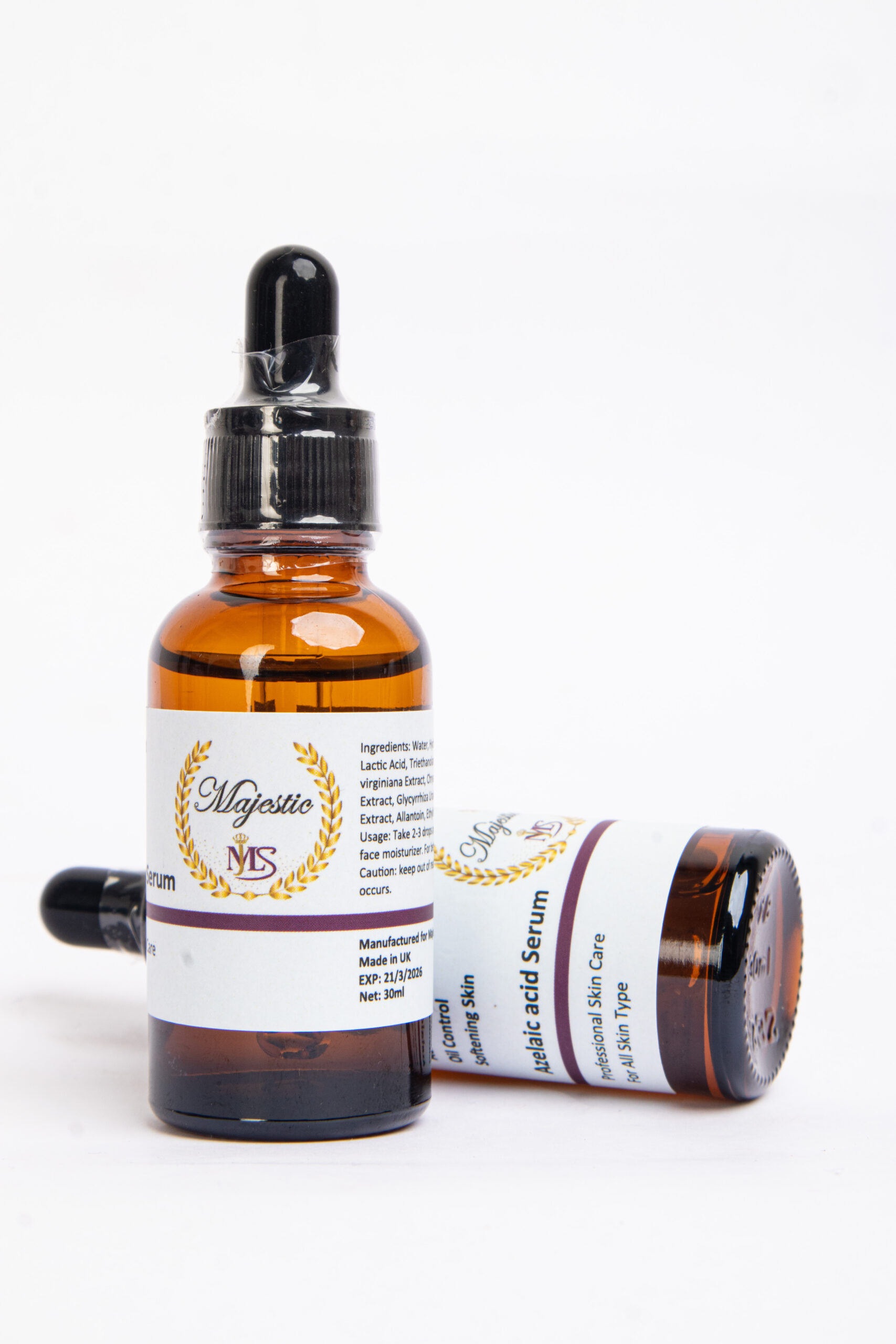 L’acide azélaïque diminue l’obstruction des pores et donc la formation de points noirs. C’est un véritable allié des peaux mixtes à grasses. Il unifie le teint, matifie la peau, resserre les pores, élimine les imperfections et les cicatrices disgracieuses et prévient les imperfections.